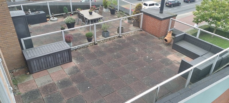 De maisonnette heeft een ruim, zonnig dakterras van +/- 32 m2.