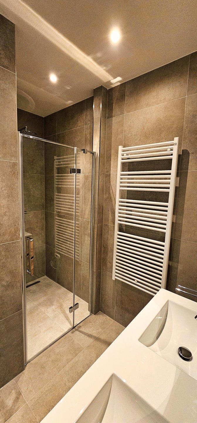 - Luxe badkamer met een ruime inloopdouche en dubbele “his and hers” wastafels
