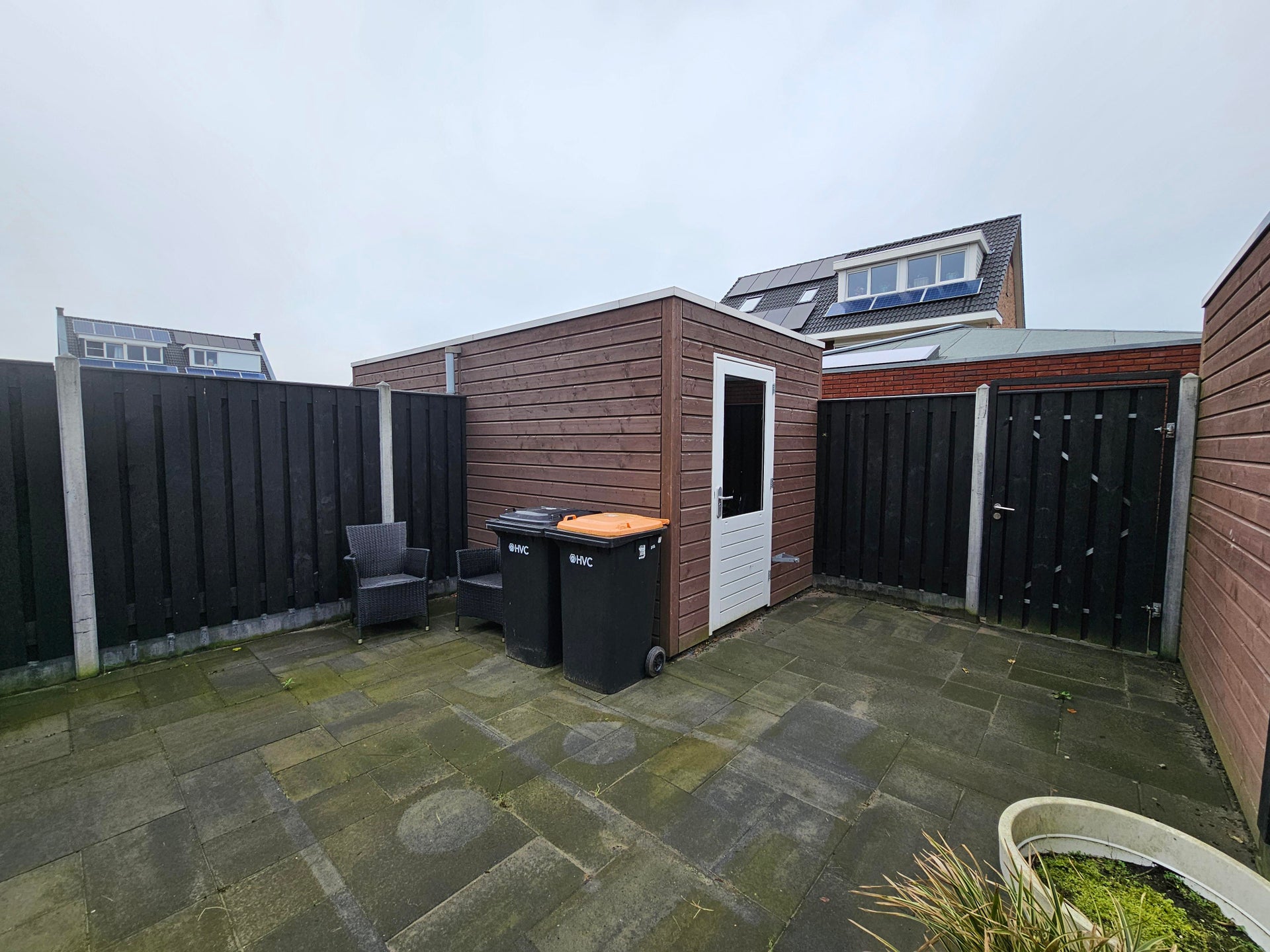 Ruime achtertuin van +/- 55 m2 met berging alsook een voortuin van +/- 25 m2.