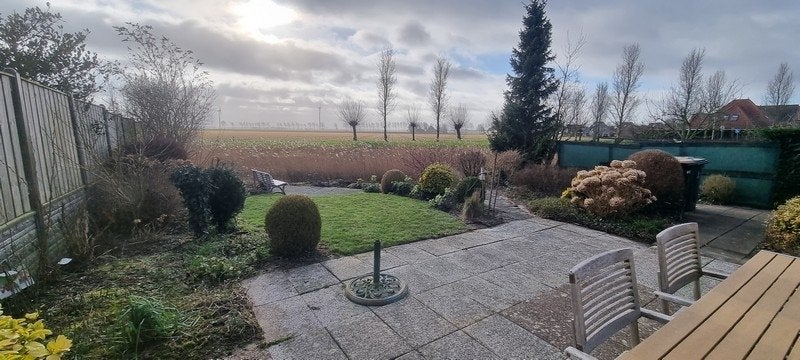 De woning heeft een riante voortuin met ruime parkeermogelijkheden en een grote zonnige achtertuin welke gelegen is aan het water en met een prachtig uitzicht over de velden.