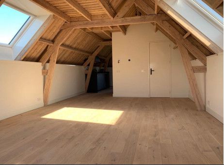 In het gehele woonruimte ligt een mooie eiken houten vloer en is voorzien van vloerverwarming. Het studio/appartement is zeer geschikt voor starters/zzpers.